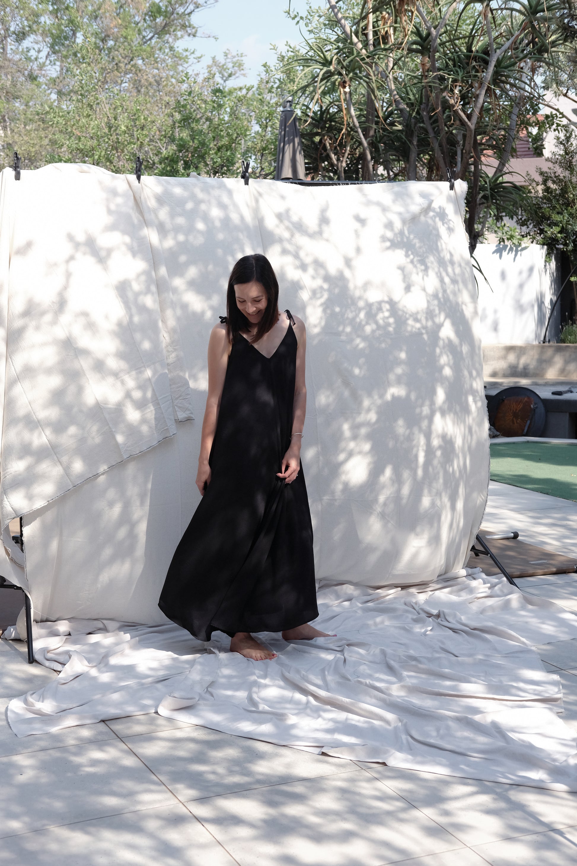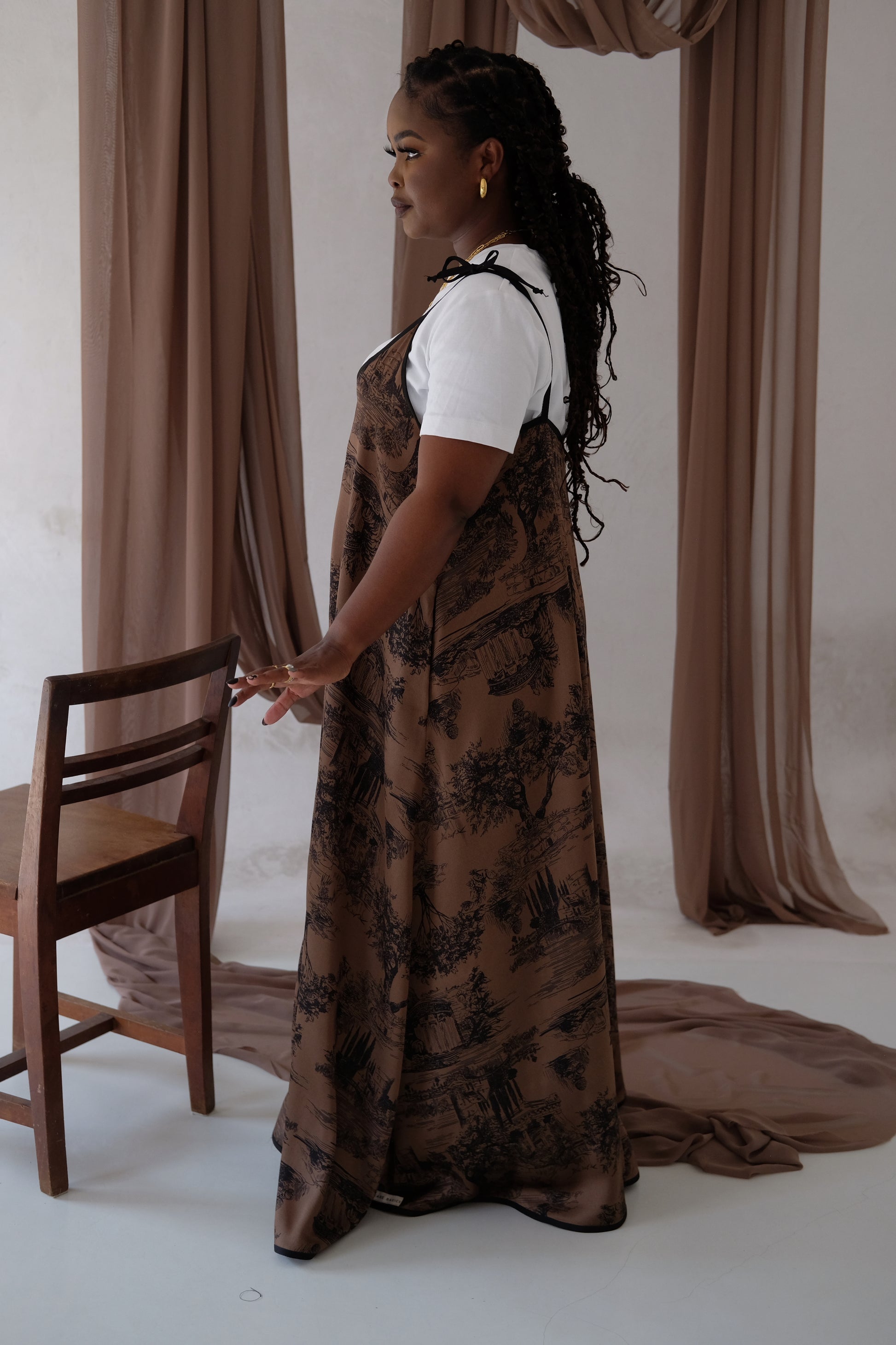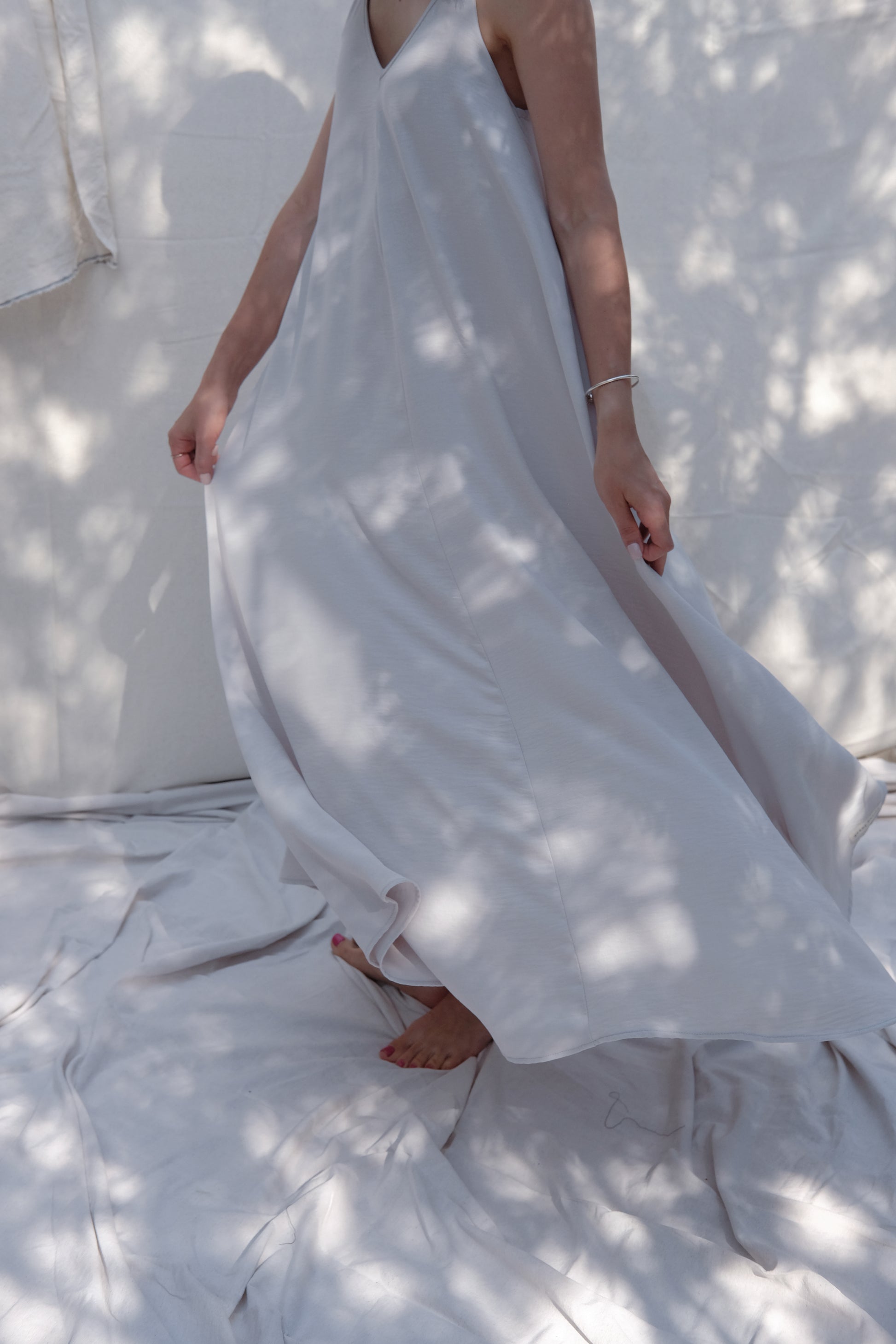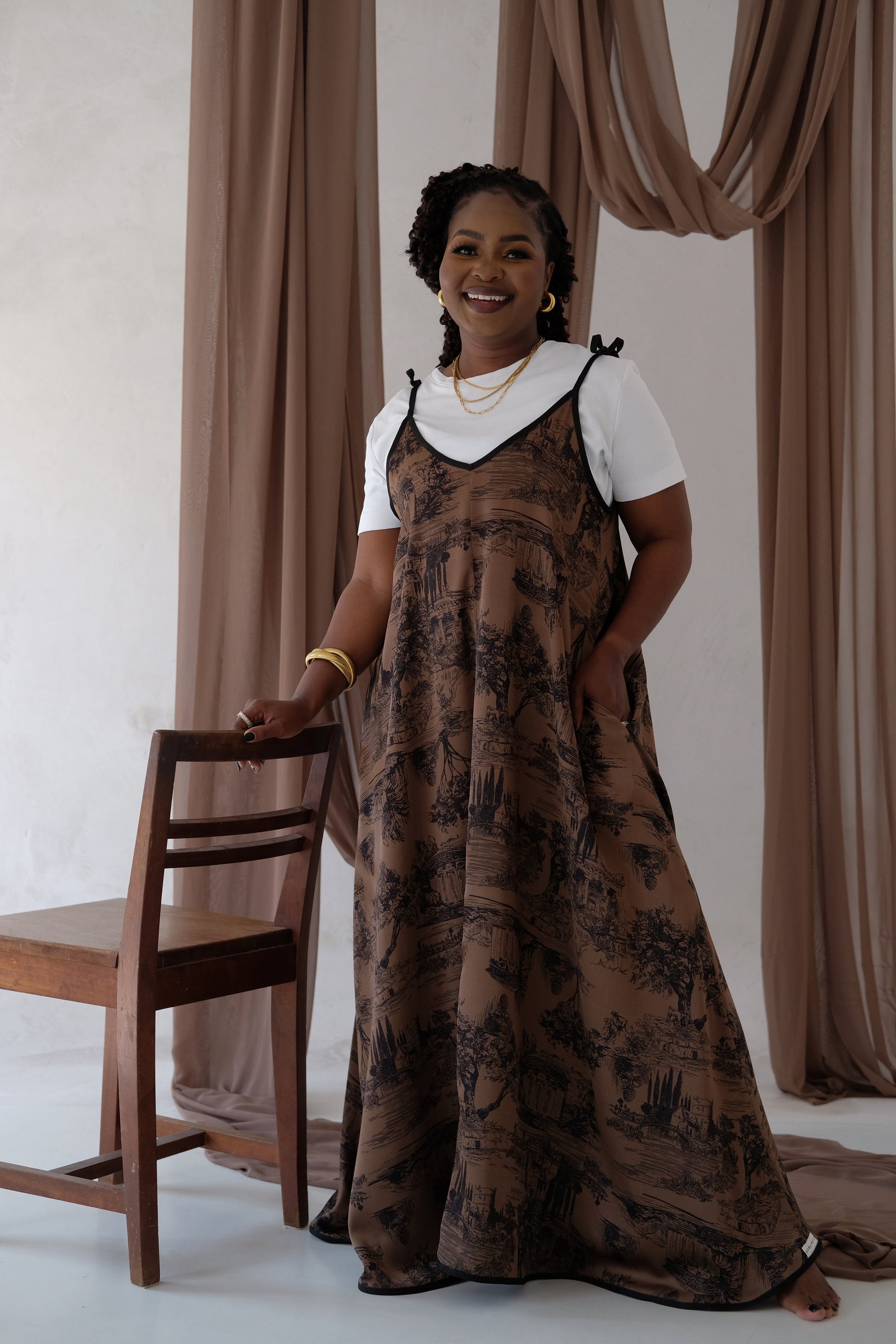It has adjustable shoulder ties to easily and discreetly breastfeed. The pockets, and full length skirt add convenience and style. This dress is multifunctional during any season of life and should be a staple in your wardrobe.